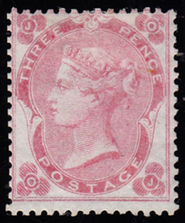 SG77 1862/ 64 3d. Pale carmine-rose. Fresh mint, original gum example.