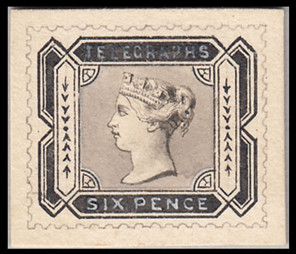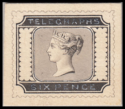 1880 Telegraphs: hand painted essay for a 6d. value by DLR.