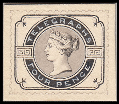 1880 Telegraphs: hand painted essay for a 4d. value by DLR.