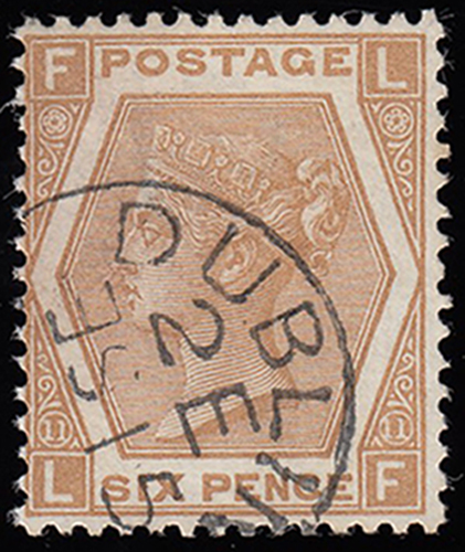 SG122a 1872 6d. Chestnut, plate 11, LF. Superb used, DUBLIN cds.