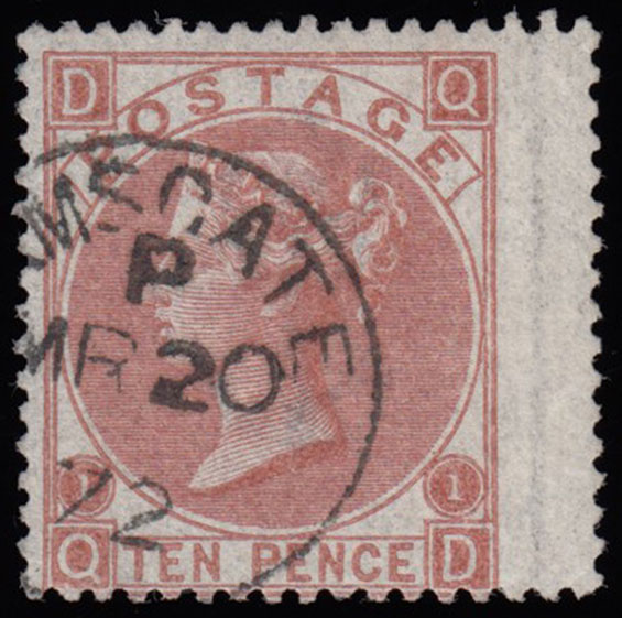 SG112 1872 10d. Red-brown, QD. Very fine used with a crisp RAMSGATE steel cds.