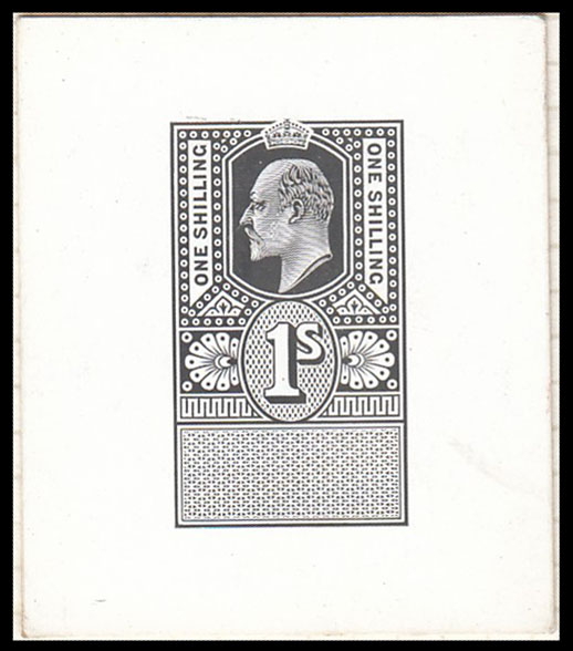 1902 1/- Unappropriated, die proof in black on glazed card.