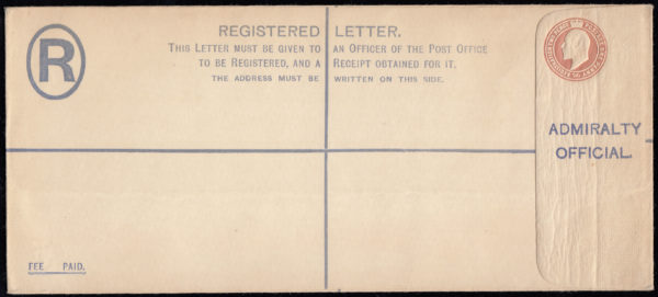 SG117 1868 2d. Blue stationery OHMS envelope, “H.M.S Britannia” imprint.