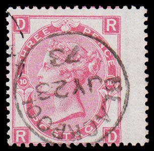 SG103 1870 3d. Rose, plate 6, RH. Very fine cds example, London FE.27.71. Nice colour.