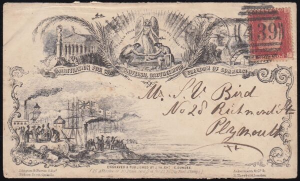 SG43 1870 Universal Brotherhood Valentine Design. Superb example with 1d. rose-red, plate 115, EJ, Launceston to Plymouth.