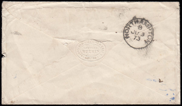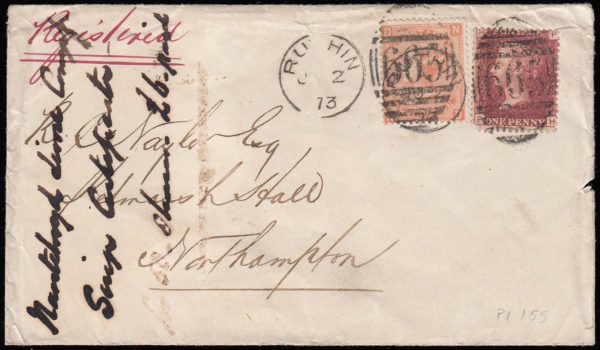 SG94 1873 Registered envelope, RUTHIN to NORTHAMPTON.