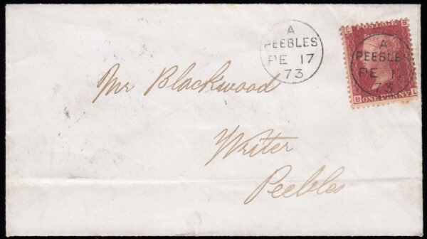 SG43 1873 1d. Rose-red, plate 163, BL. Superb used, neat Peebles cds for FE.17.73, used locally.