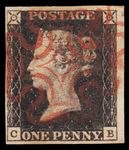 SG2 1840 1d. Black plate 1a (CB). Very fine used, neat upright red maltese cross.