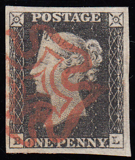 SG2 1840 1d. Black, plate 1a, BL, superb used with excellent margins.
