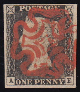 SG2 1840 1d. Black, plate 1a, AE. Superb used, bold red maltese cross.