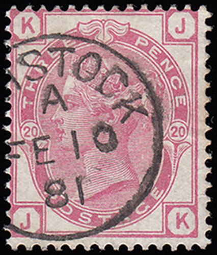 SG158 1881 3d. Rose, plate 20, JK. Superb used, dated FE.10.1881- the First Day of Issue was March 1st! A rare pre-release.