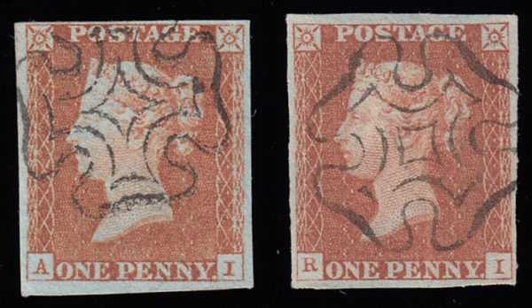SG8 1841 1d. Red-brown, plate 20 (AI) and 28 (RI) Scots maltese cross cancels.