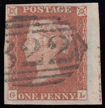 SG8 1845 1d. Red-brown, plate 53, GL. Very fine used marginal example.