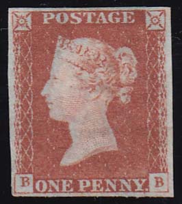 SG8 1845 1d. Red-brown, plate 62, BB. Fine mint, original gum, even margins.