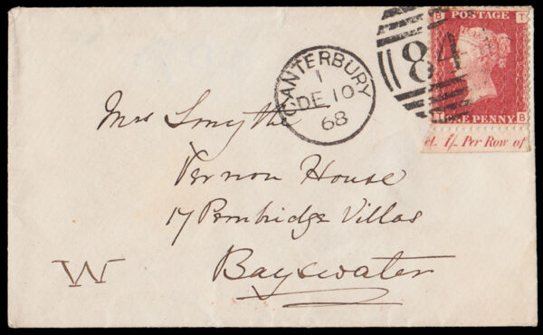 SG43 1868 1d. Rose-red, plate 99, TB. Marginal inscription example with excellent bright colour.