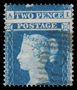 SG19 1854 2d. Blue Pl.4 (BI). Used example with a dramatic misplacement of perforations…