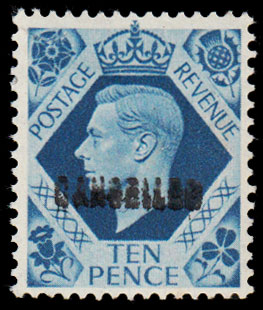 SG474 1941 10d. Turquoise blue, CANCELLED type 33. Fine, original gum example of this rare stamp.