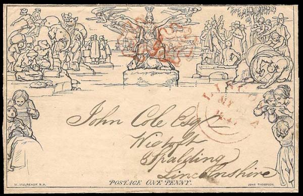 SGME1 1840 1d. Mulready wrapper, stereo A18, Lincoln to Spalding with dispatch cds for MY.10(?).40 on the front. Rare first Sunday use!
