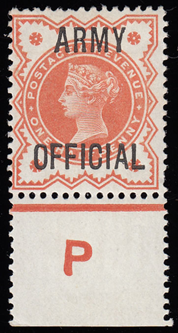 SGO41 1896 ½d. Vermilion. “ARMY OFFICIAL”. Very fine o.g. control “P” example.