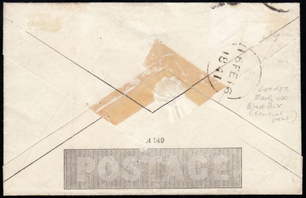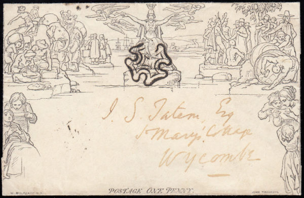 1840 Mulready envelope, stereo A149, forme 2. London to Wycombe.