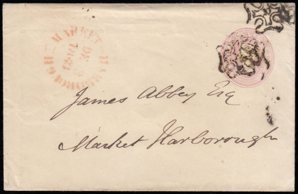 1843 1d. Pink envelope, No.10 in maltese cross, to Market Harborough.