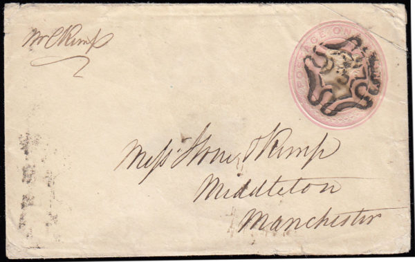 1843 1d. Pink envelope, No.3 in maltese cross to Manchester.