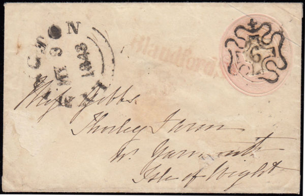 1843 1d. Pink envelope, No.6 in maltese cross, to the Isle of Wight.