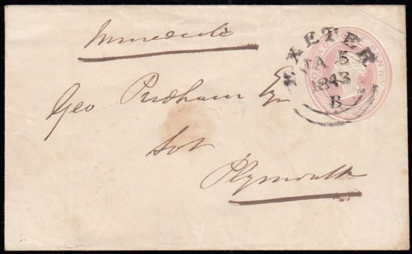1843 1d. Pink envelope, Exeter to Plymouth.