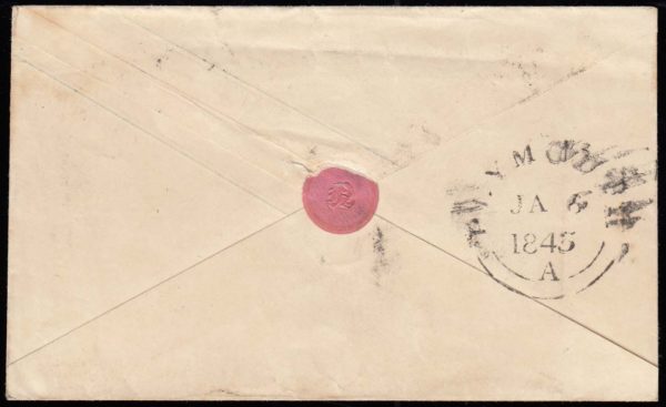 1842 1d. Mulready wrapper, A19, London to Basingstoke, cancelled contrary to regulations.