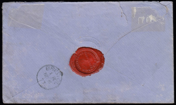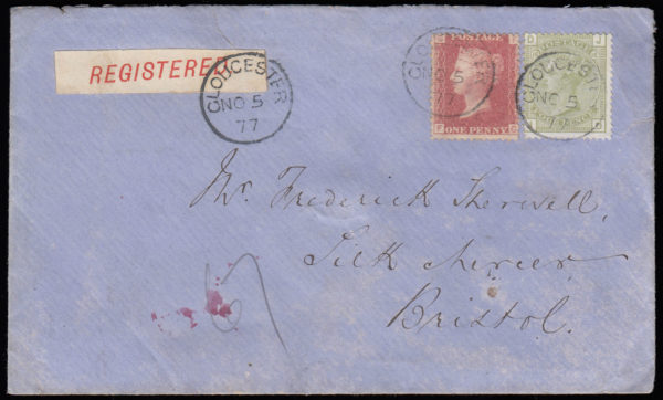 SG153 1877 Registered cover sent from Gloucester to Bristol.
