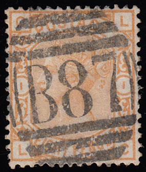 SG156 1876 8d. Orange, LC, with crisp B87 numeral of WEYBRIDGE STATION