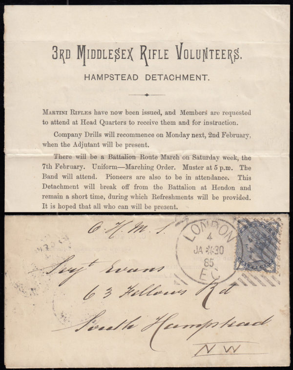 SG187 1885 OHMS printed “3RD MIDDLESEX RIFLE VOLUNTEERS” wrapper.