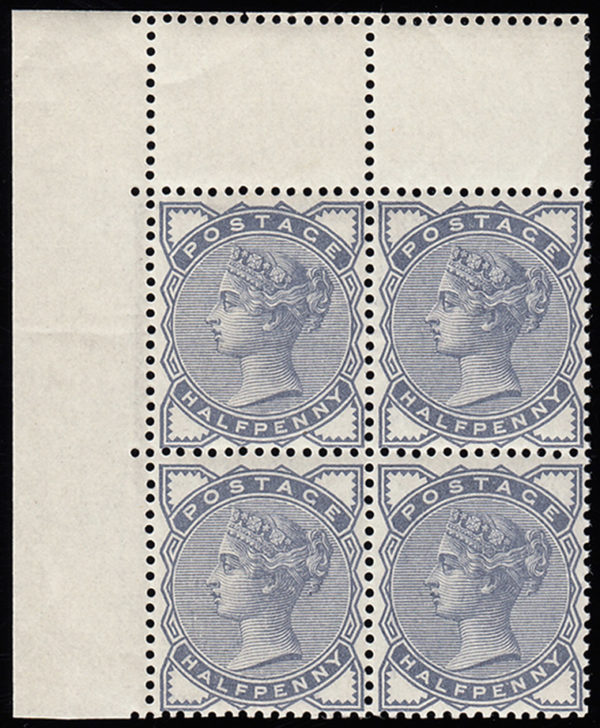 SG187 1883/ 84 ½d. Slate blue. Very fine, unmounted corner block of 4.