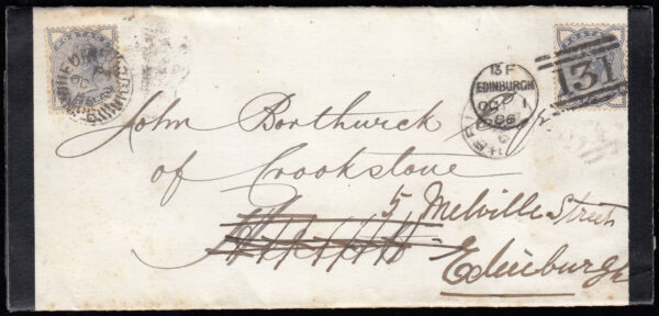 SG187 1886 Printed Mourning entire, Edinburgh to Heriot.
