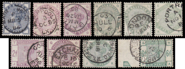 SG187/196 1883-4 1/2 d. – 1s. Lilac & Green. Set of 10. Superb used examples all with c.d.s. handstamps. Cat. £1700+.