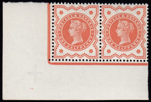 SG197Wi 1887 ½d. Vermilion INVERTED WATERMARK superb unmounted corner pair.