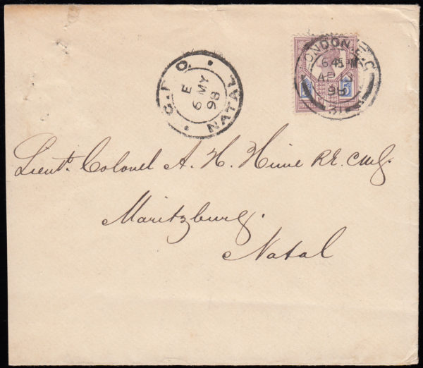 SG207a 1898 5d. Die II on cover, London to Maritzberg, Natal, South Africa.