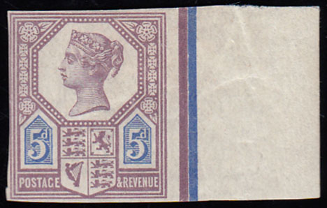 SG207a 1887 5d. Die II Imprimatur ex plate 9, marginal setting (b), marginal example.