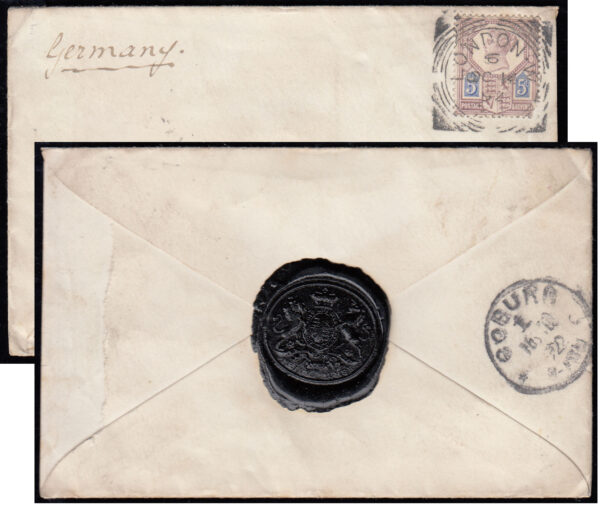 SG207a 1894 Envelope, London to Germany with 5d. Jubilee and superb black wax seal of the Privy Purse.