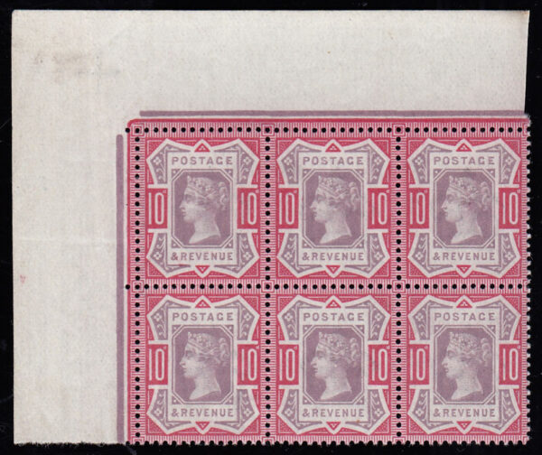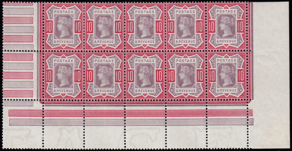 SG210 1890 10d. Dull purple and carmine. Superb unmounted, original gum marginal block of 10.