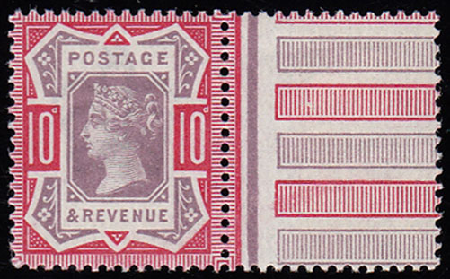 SG210 1887 10d. Jubilee, corner example, u/m showing a good shift of the crown wmk & centrally the marginal wmk line – very unusual.