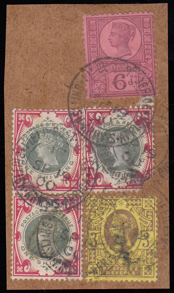 SG214 1900 1s. Green and Carmine “Jubilee”. Exceptionally fine used by neat George St cds’s.