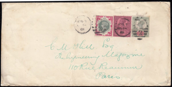 SG214, SG208 and SG200 1901 Envelope from London to Paris.