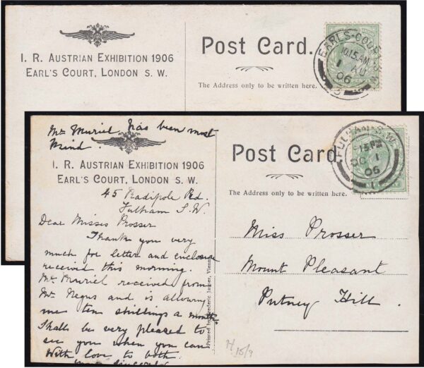SG217/ SG218 1906 Austrian Exhibition, two post cards.