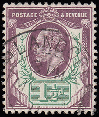 SG224var 1906 1½d. Deep slate purple and bluish green (c). Superb used, neat cds.