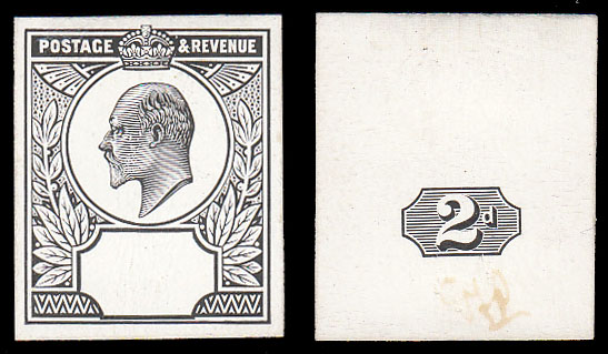 SG226 1902 2d. Head and duty plate cut down Die proofs to stamp size.
