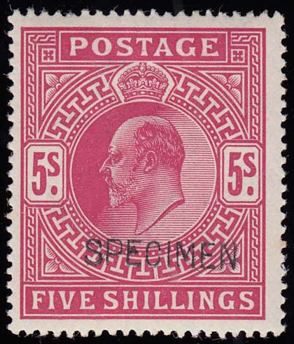 SG263 1902 5/- Bright carmine SPECIMEN type 16