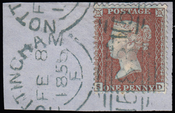 SG26var 1855 1d. Red-brown, pl. 7, HG. Die II. Alphabet II. LC. P14.