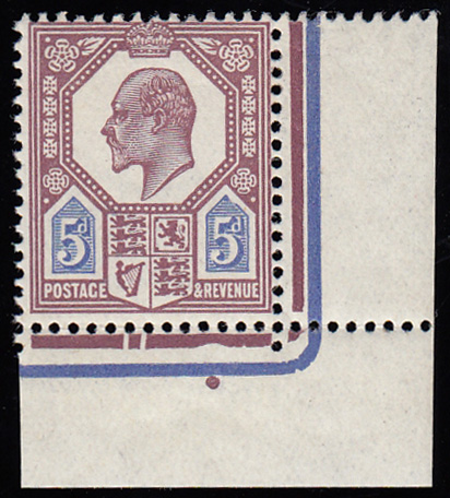 SG293 – 1911 5d. Dull Red-Purple and Blue. S. House. Unlisted Variety.