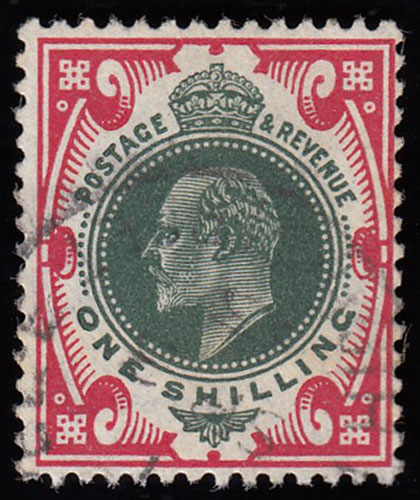 SG314 1911 1/- Green and carmine. A very fine used example.